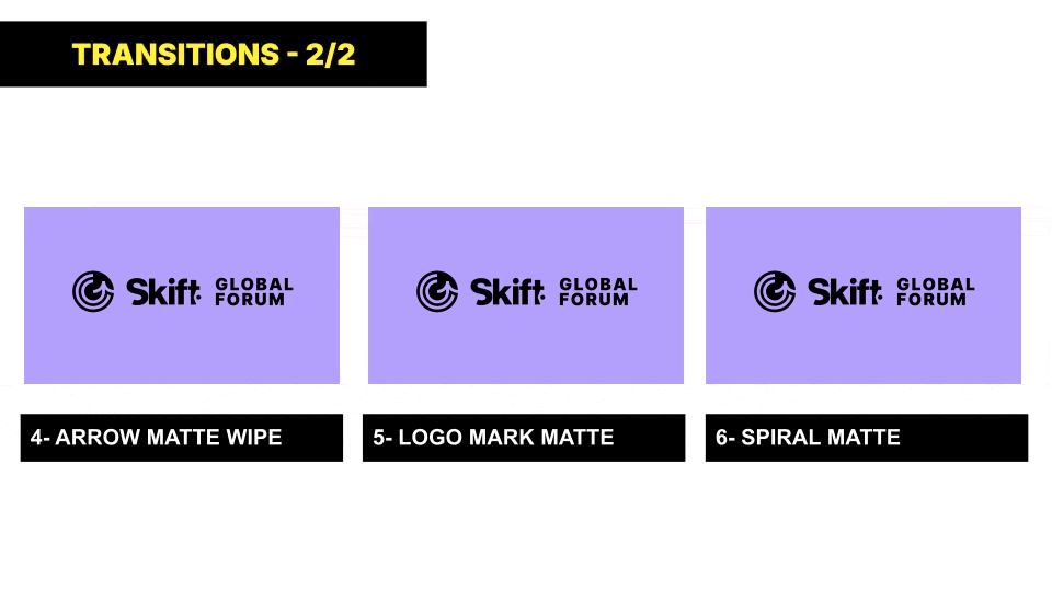 Skift Aviation Forum 2024 (SAF24) Play On Progression Step 1: Transition from session settle screen to forum logo hero screen.